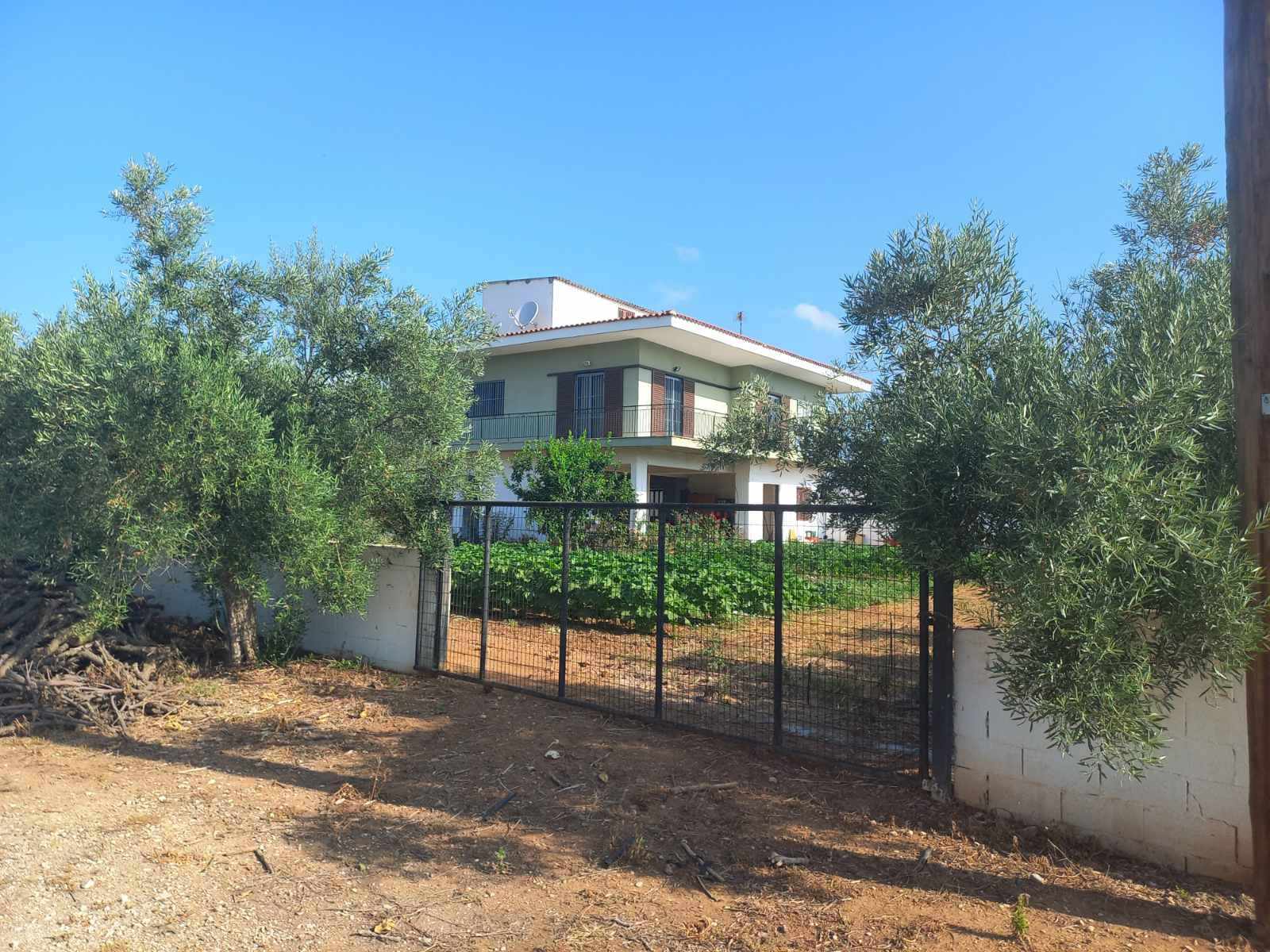For sale: detached house of 240 sq.m. with a garden, situated just 10 minutes from the town of Argos, in a quiet location. On the ground floor there is a bedroom, a kitchen and a bathroom. On the first floor there are 3 bedrooms, living room – kitchen, living room and 2 bathrooms. It has perimeter terraces. There is a storage room (9 sq.m.), on the roof. With the house is sailing a land plot (5.000 sq.m.) with navel orange trees with its own irrigation system.